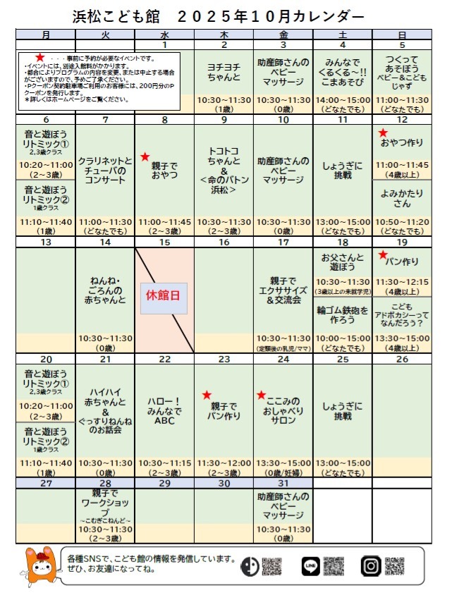 10月のイベントカレンダーです!