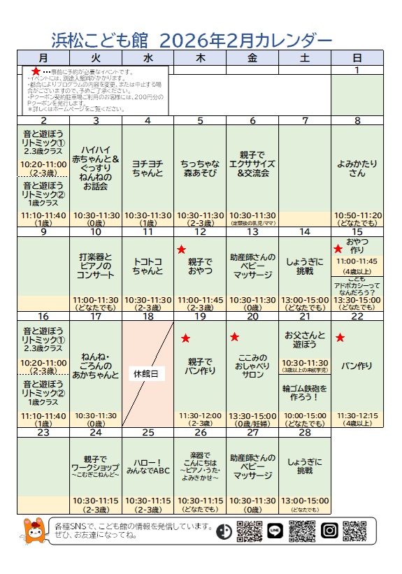 2月のイベントカレンダーです!