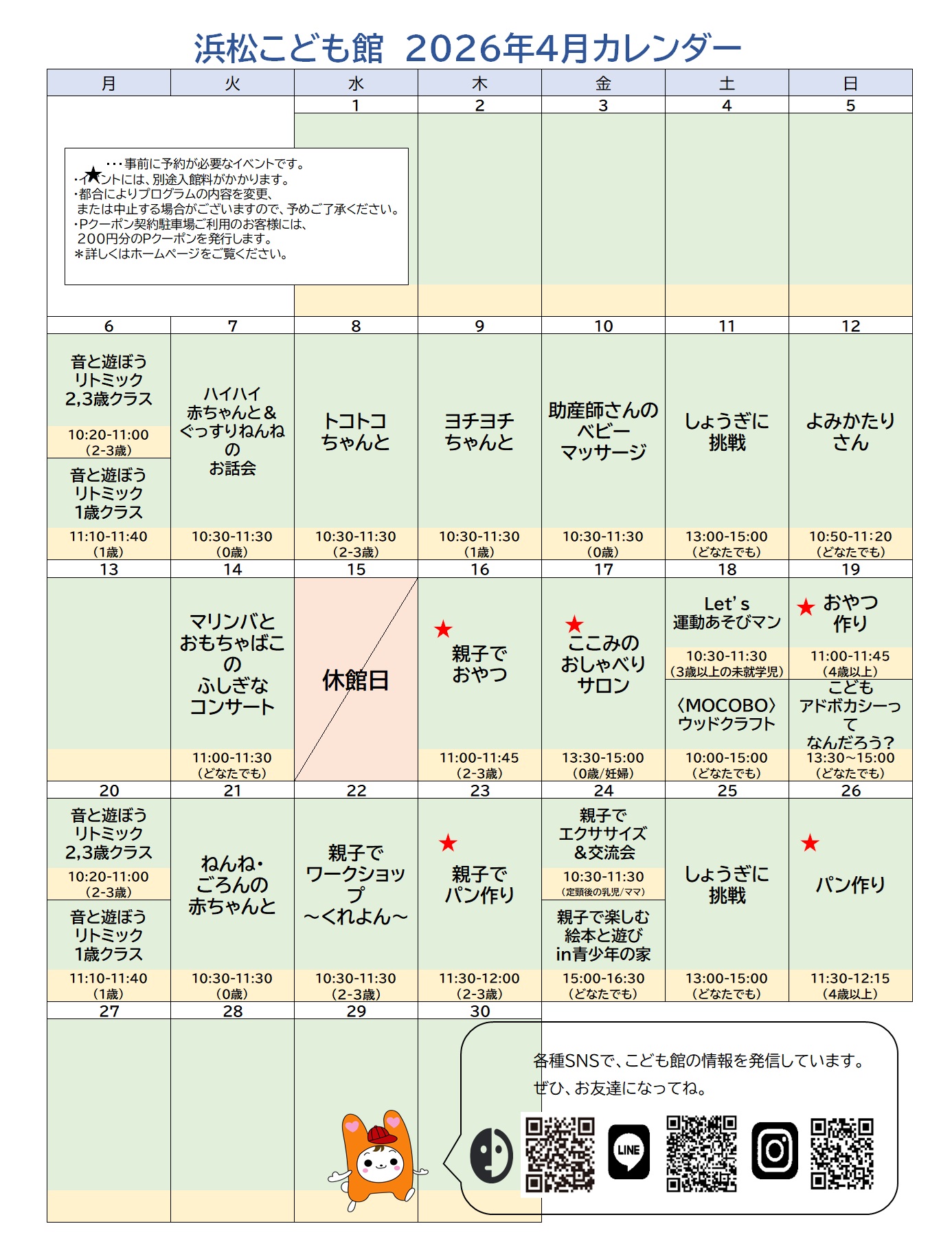 4月のイベントカレンダーです!